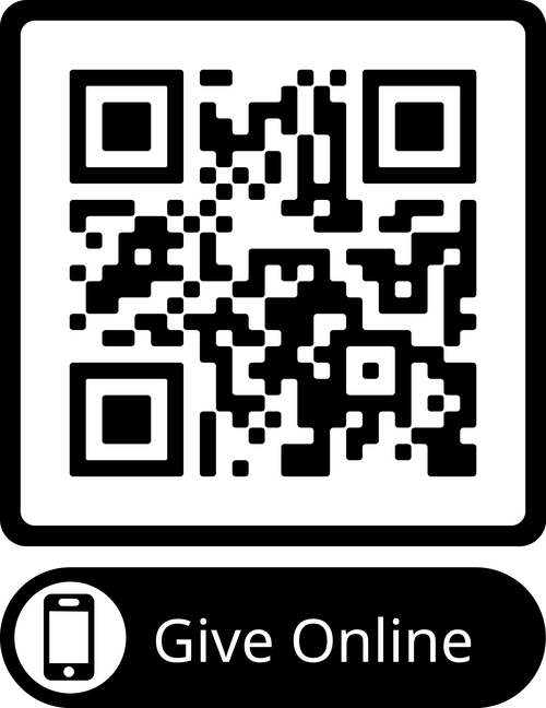 Please scan the QR code to the right with the camera on your phone; open your camera, place the QR code in your frame, a yellow link will pop up, click the yellow link, and it will take you to online giving.