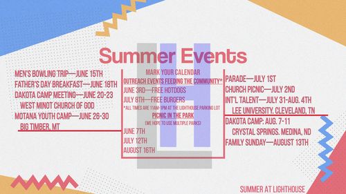 We have so many incredible events for you and your family this summer! Lighthouse offers everything from: outreach/evangelism, picnics at local parks, youth camps, cookouts, youth ministry, children's ministry, and more.